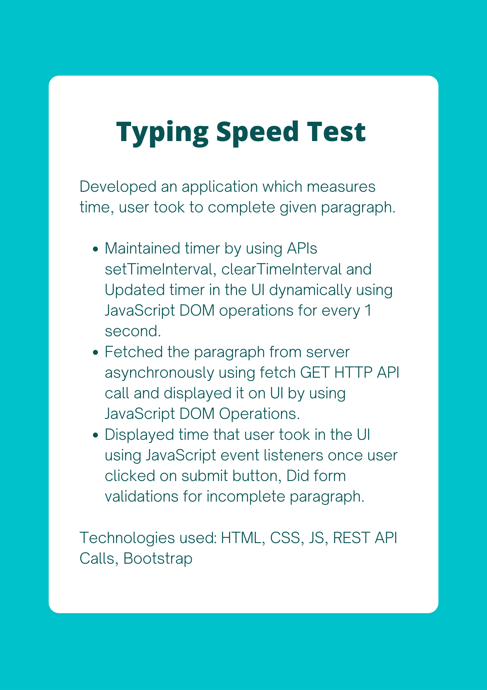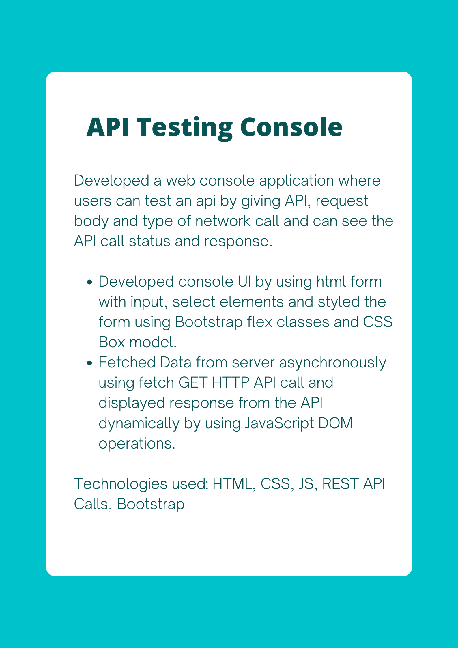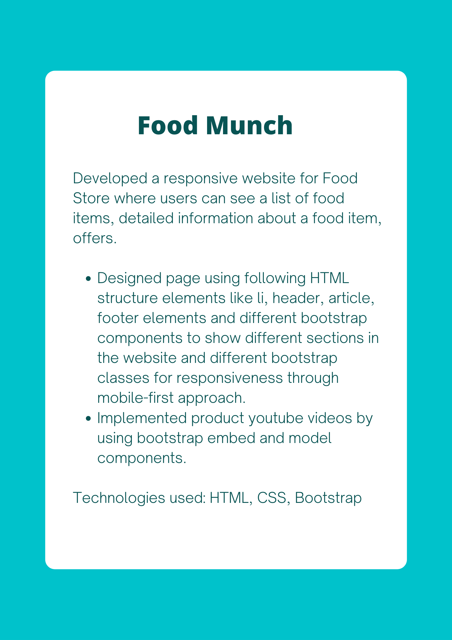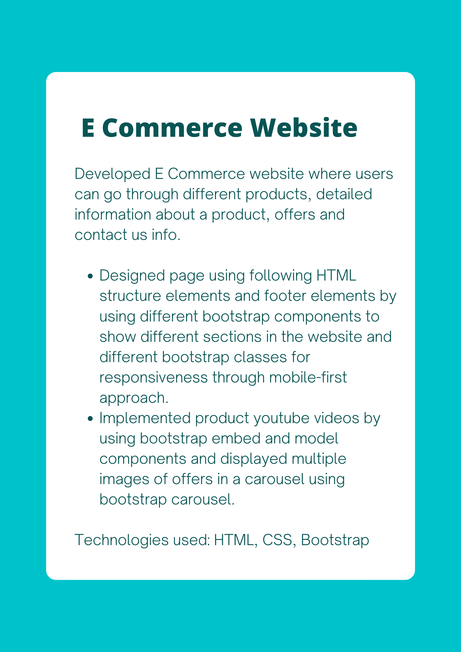 Html Css Bootstrap Javascript React JS Python Express JS Node JS SQLTesting