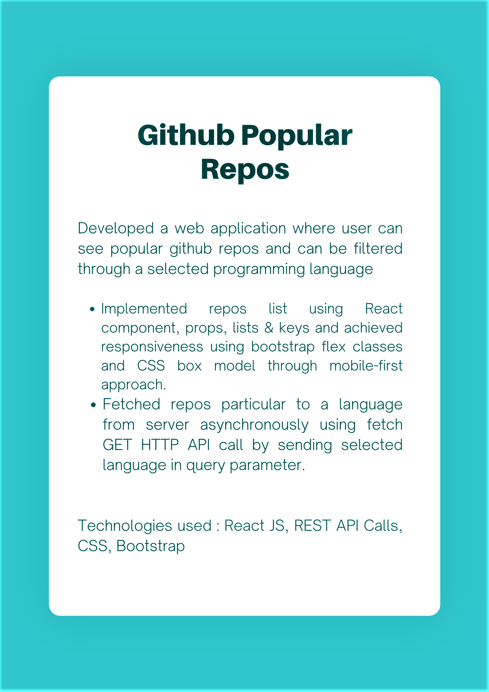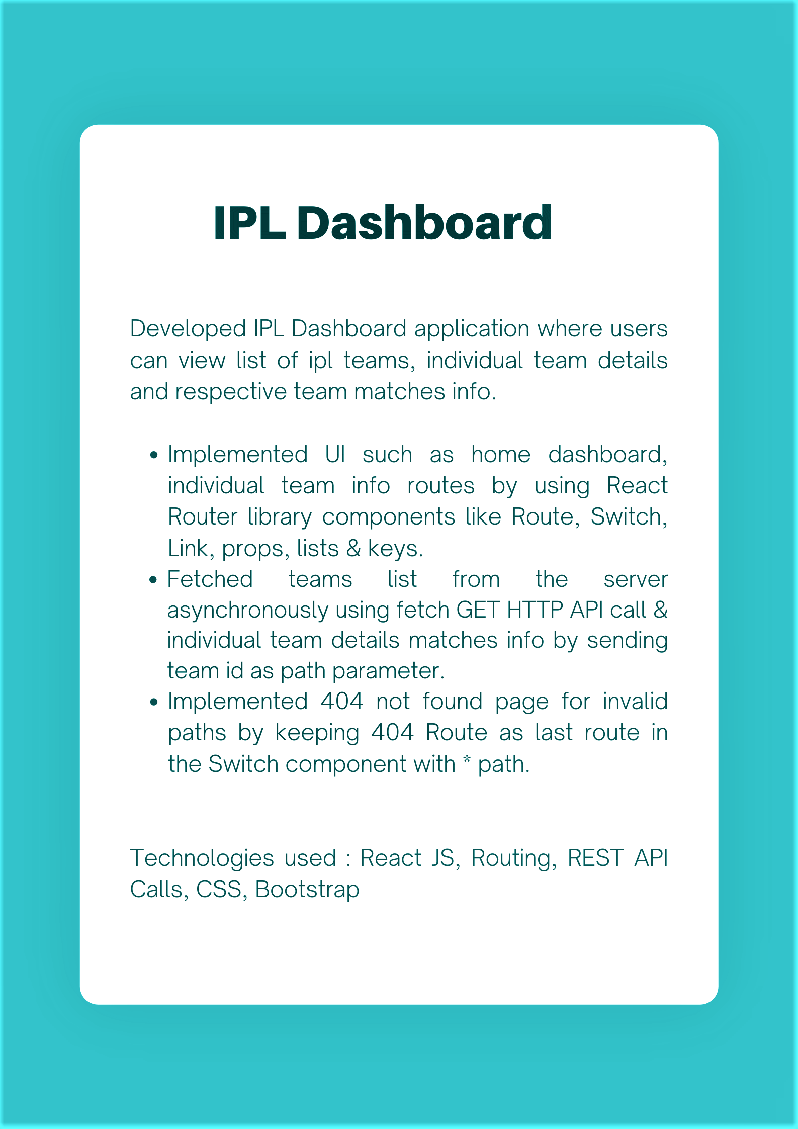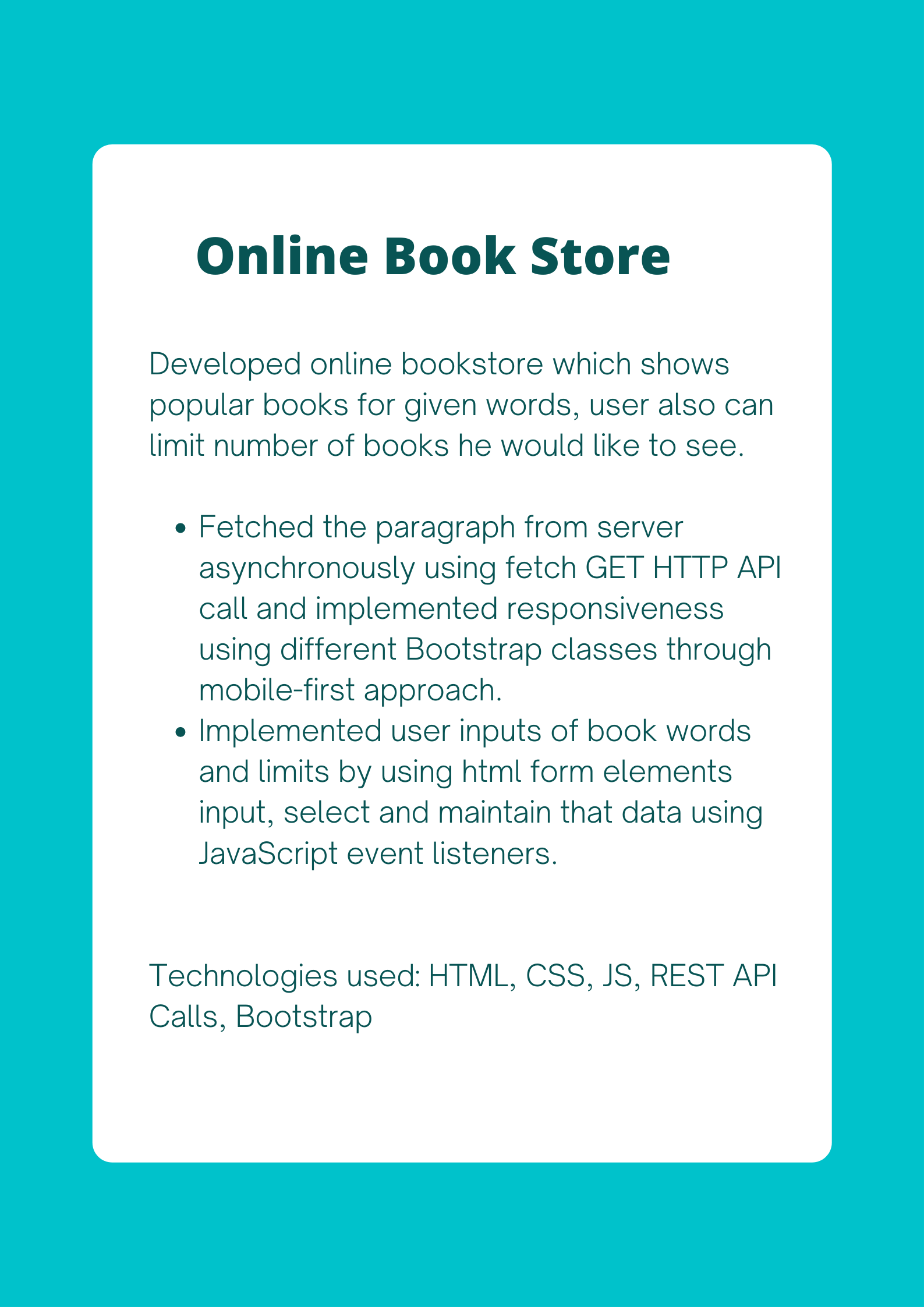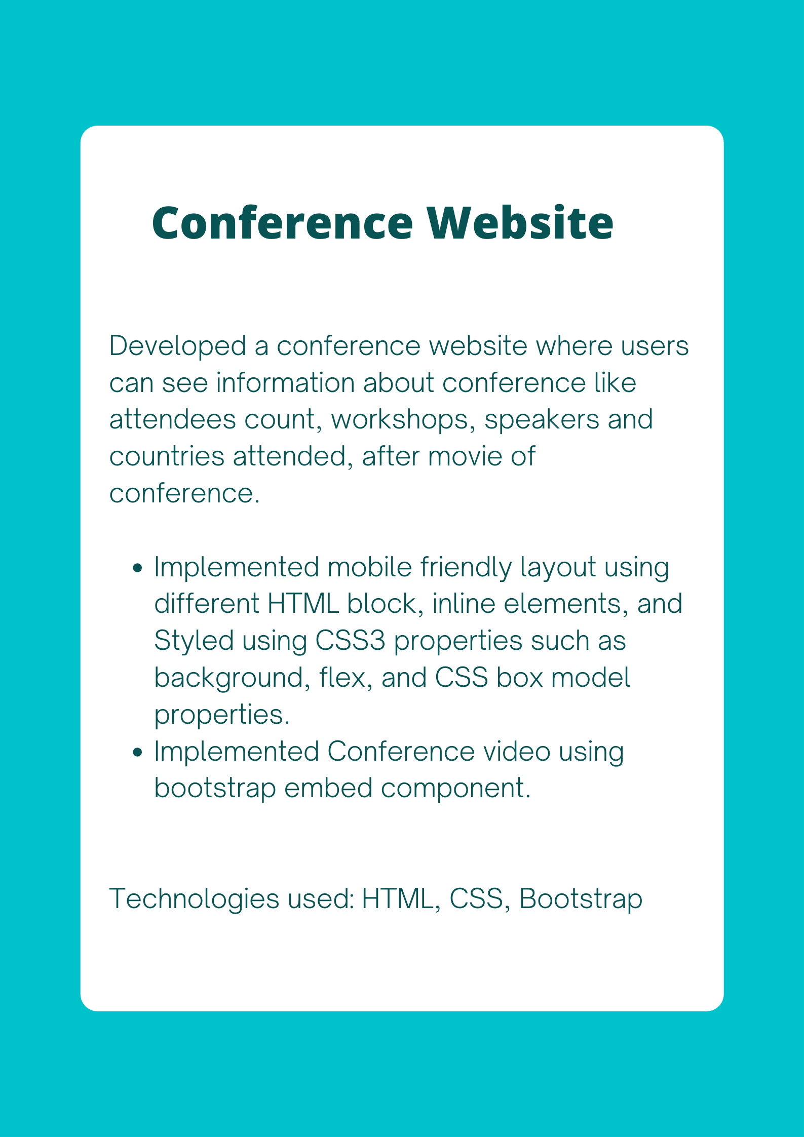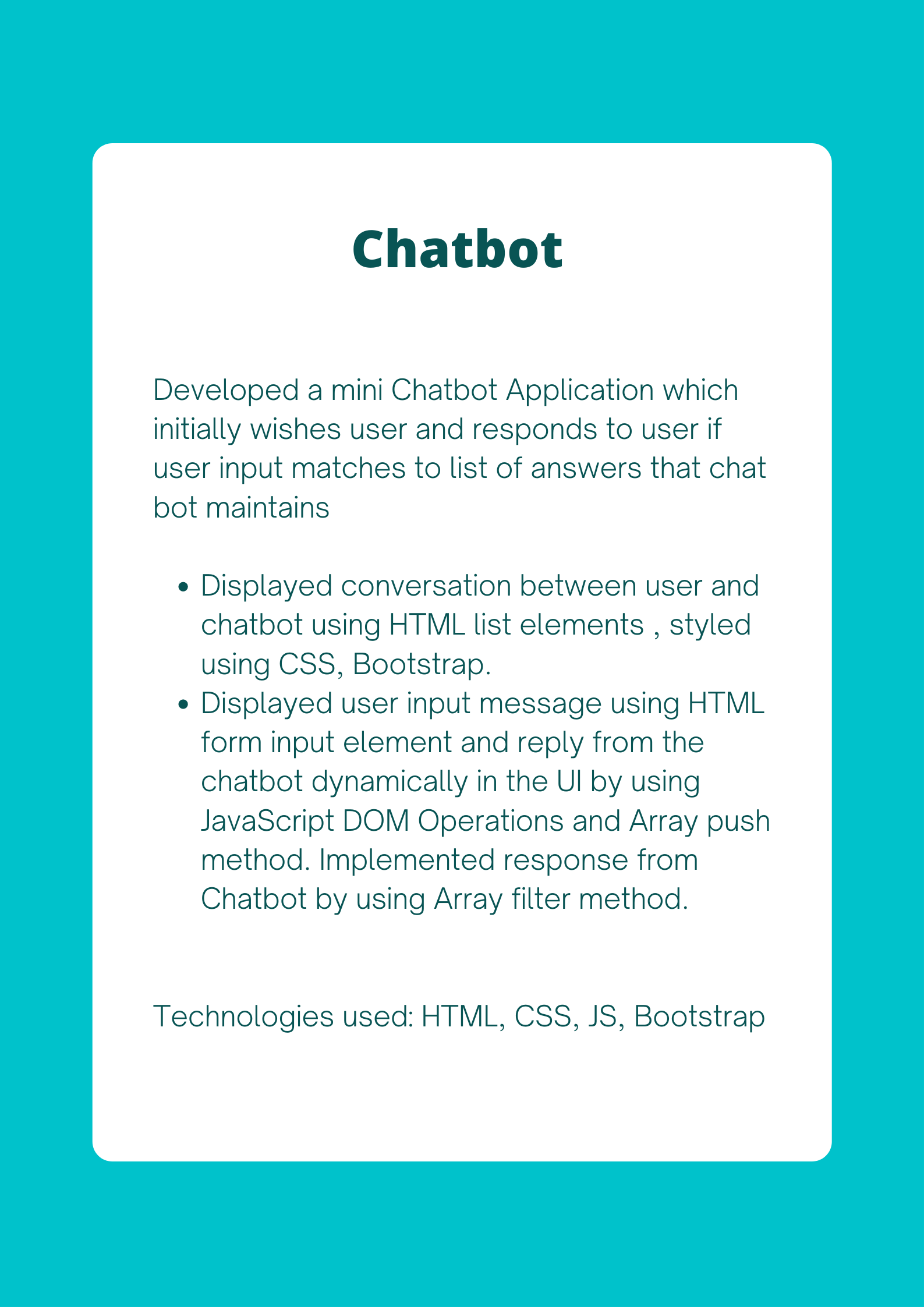 Html Css Bootstrap Javascript React JS Python Express JS Node JS SQLTesting